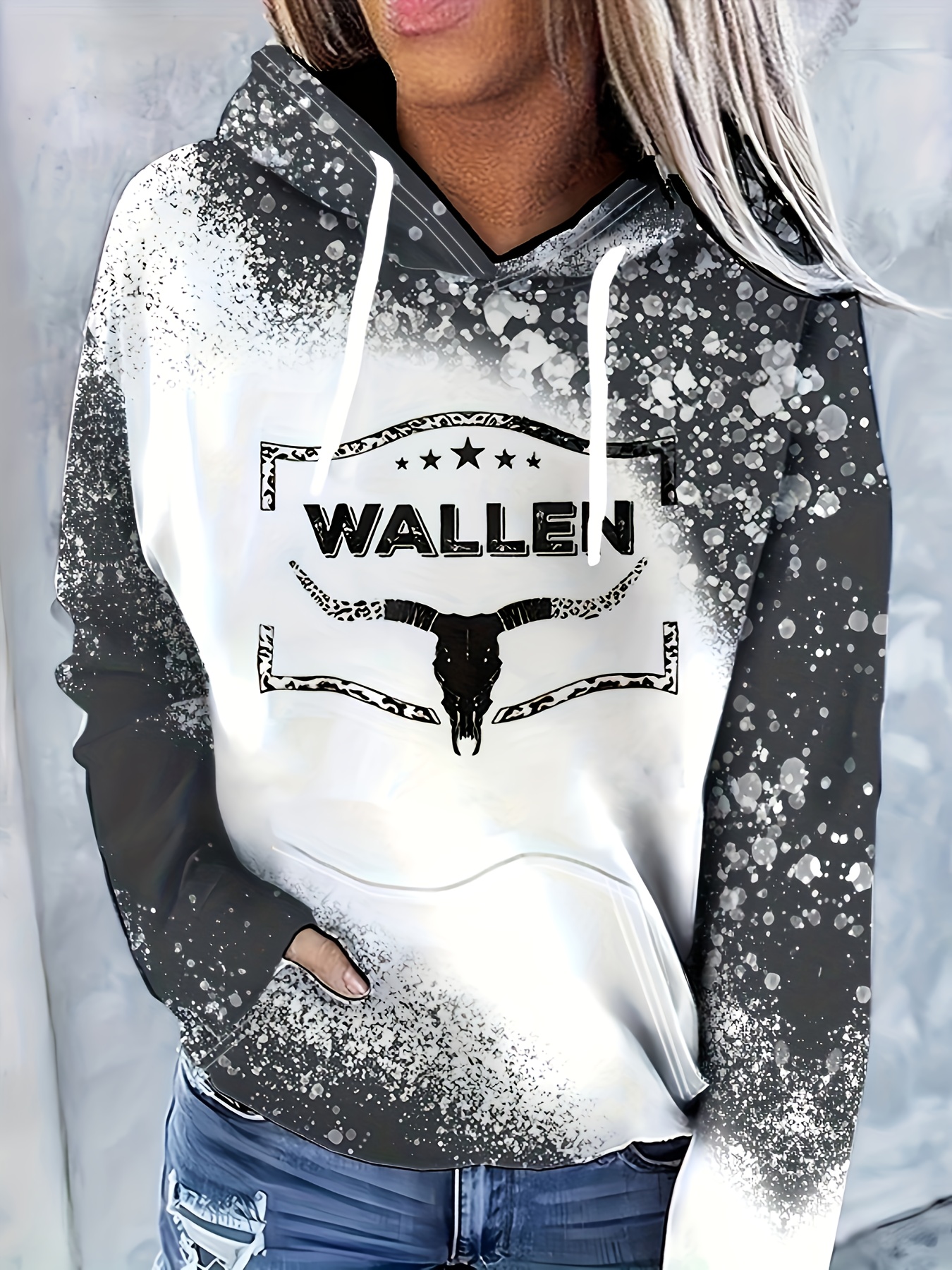 Bull Head Print Kangaroo Pocket Hoodie, Casual Long Sleeve Drawstring Hoodies Sweatshirt, Women's Clothing